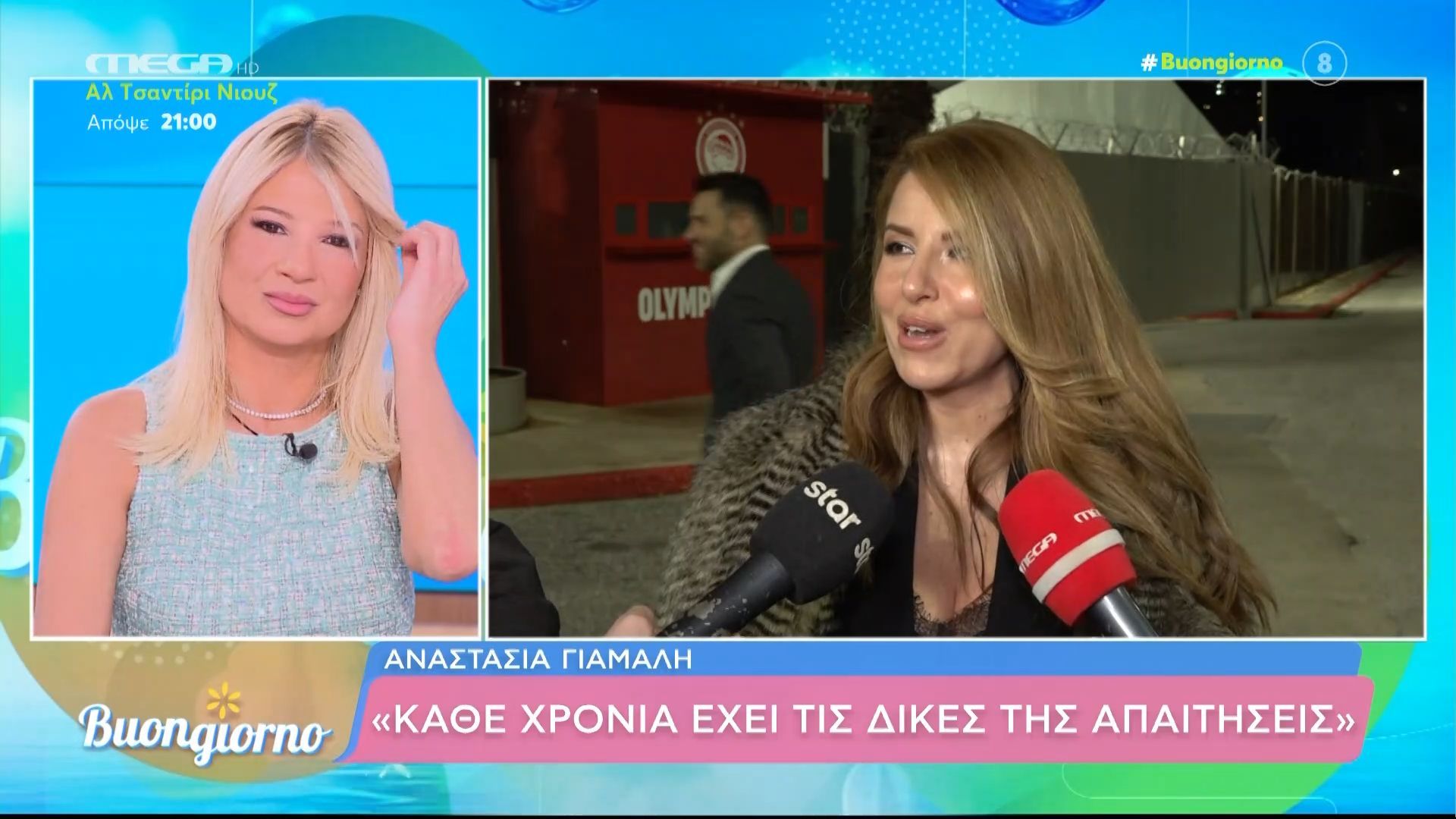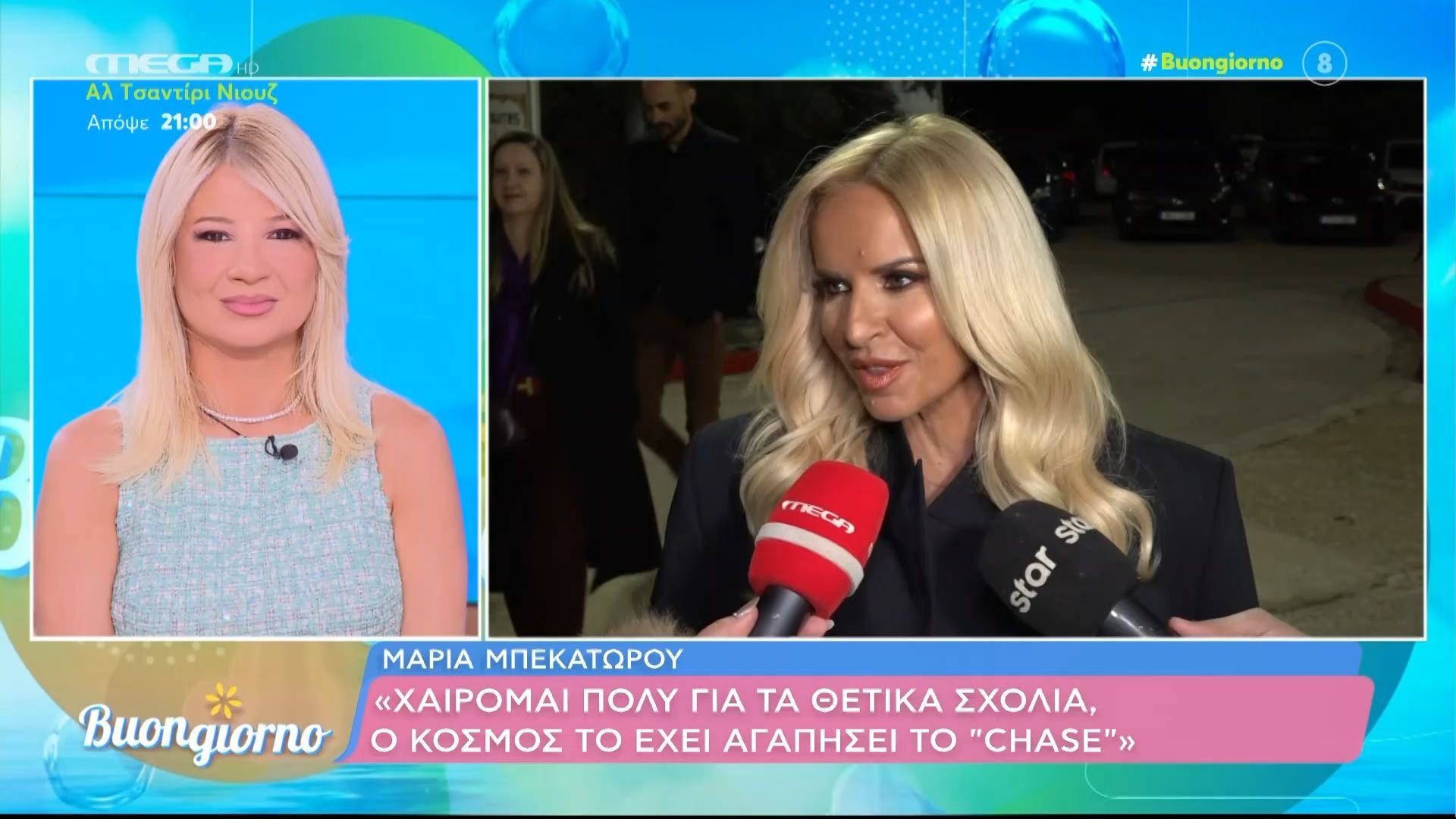 Η Μαντώ μιλά στην κάμερα του Happy Day μετά το φινάλε του Α' ημιτελικού του ελληνικού τελικού της Eurovision.
