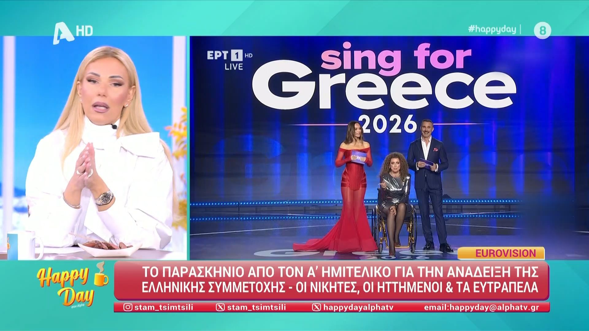 Η ομάδα του Happy Day σχολιάζει την παρουσία των τριών παρουσιαστών του Α' Ημιτελικού της Eurovision.