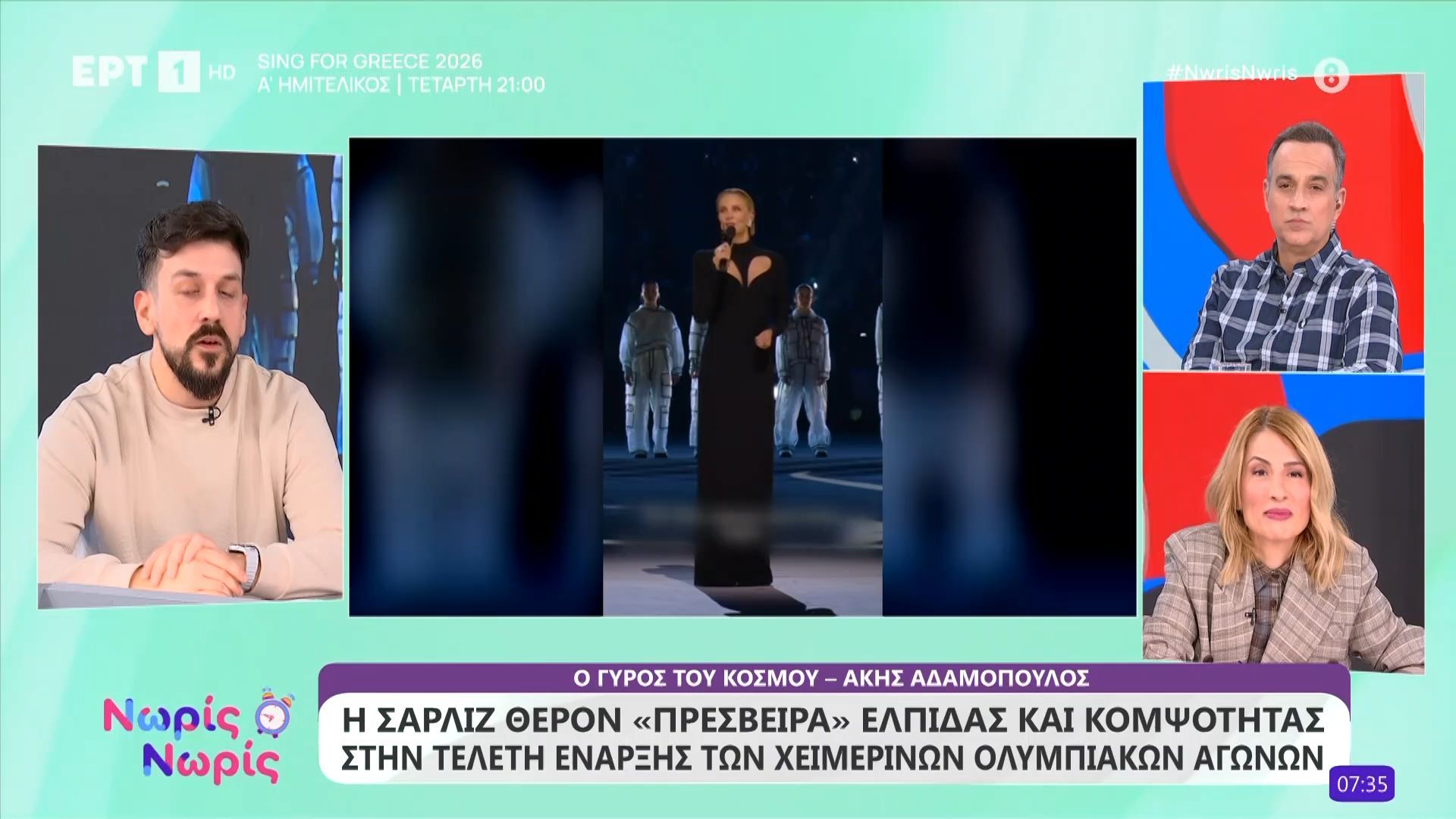 Η Σαρλίζ Θερόν, "πρέσβειρα" ελπίδας και κομψότητας, στην τελετή έναρξης των χειμερινών Ολυμπιακών Αγώνων.