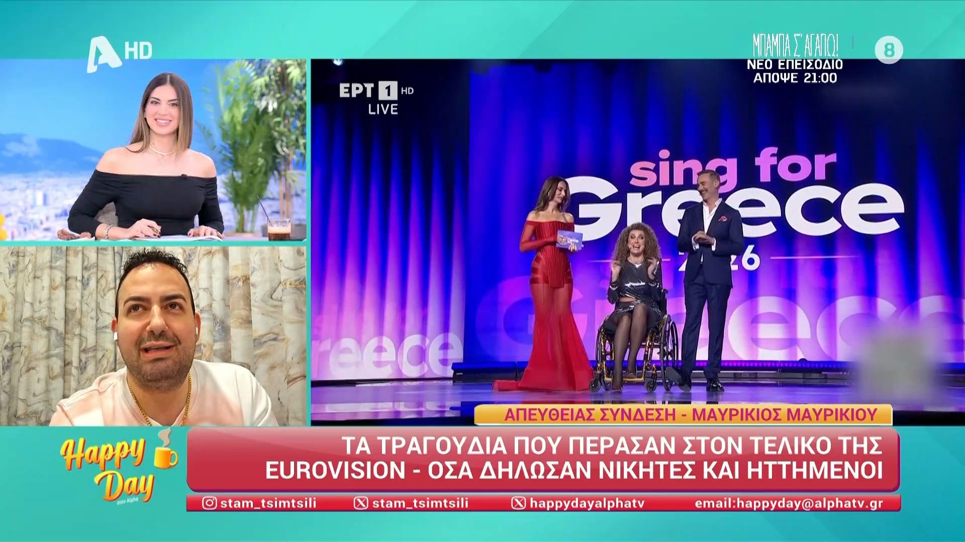 Ο Μαυρίκιος Μαυρικίου μιλάει στο Happy Day για τις συμμετοχές του Α' ημιτελικού του ελληνικού τελικού της Eurovision.