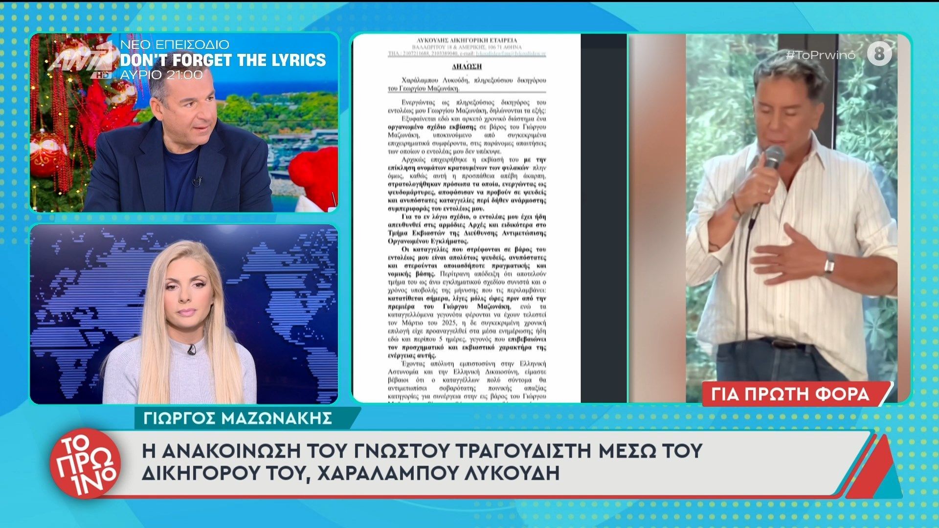 Γιώργος Μαζωνάκης: Η ανακοίνωση του γνωστού τραγουδιστή μέσω του δικηγόρου του