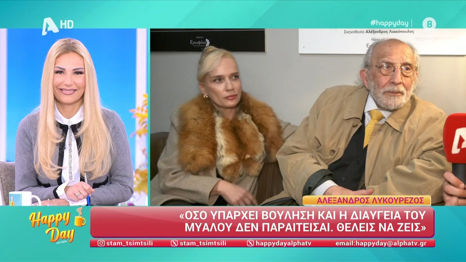Η κάμερα του Happy Day συνάντησε σε βραδινή έξοδο τον Αλέξανδρο Λυκουρέζο με τη σύντροφό του Τζένη Οικονόμου.