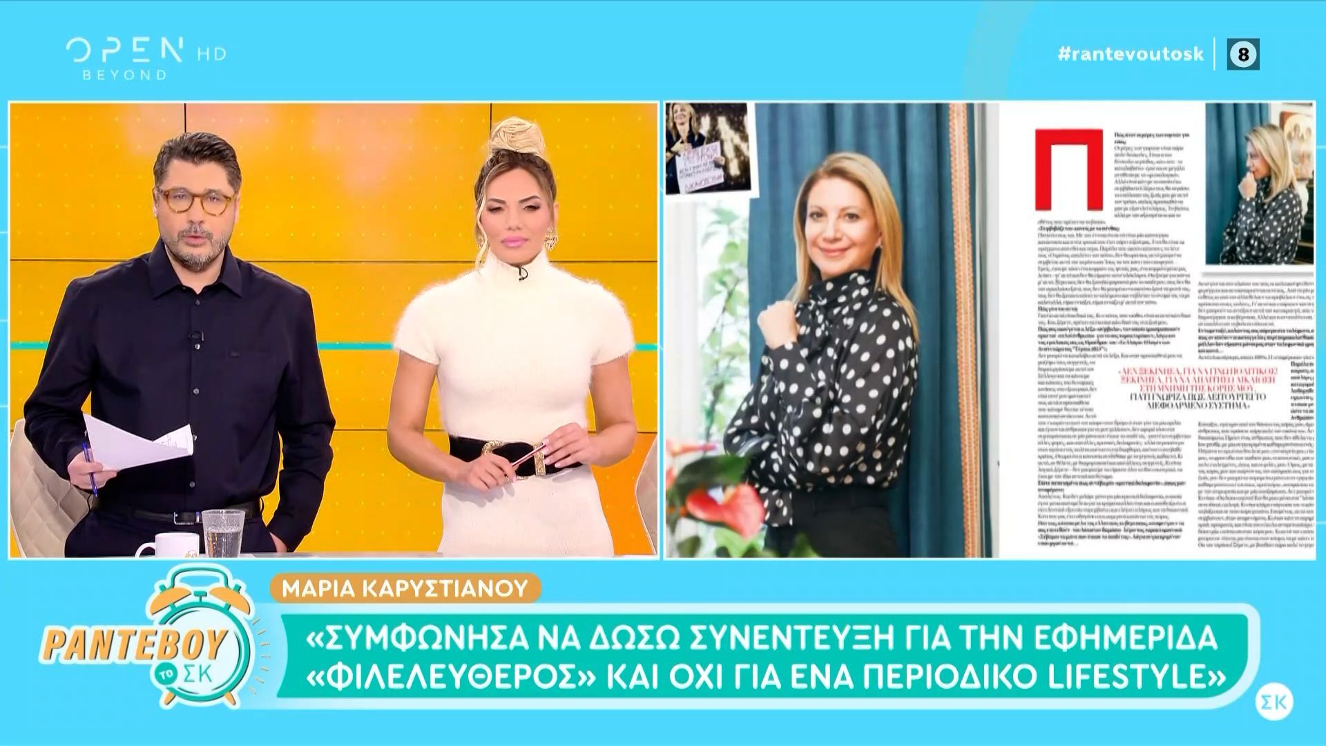 Η Μαρία Καρυστιανού δήλωσε οτι είχε συμφωνήσει να δώσει συνέντευξη στην εφημερίδα «Φιλελεύθερος».