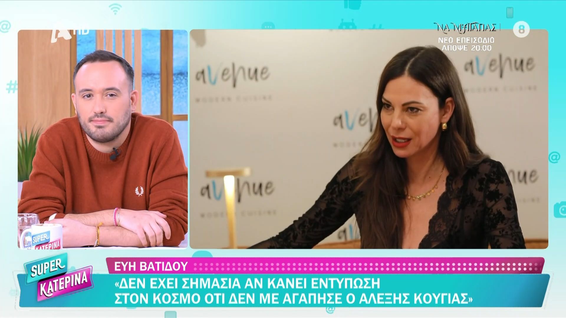 Η Εύη Βατίδου μίλησε ανοιχτά για τη σχέση της με τον Αλέξη Κούγια, δηλώνοντας ότι δεν ήταν αγάπη, αλλά μίσος, και πως δεν μπορεί να διδάξει κάτι τέτοιο στα παιδιά της.