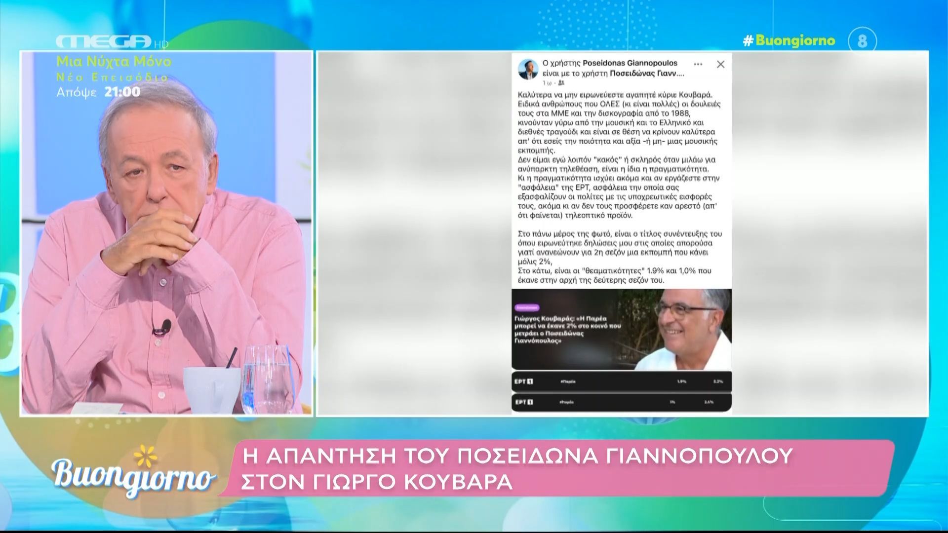 Η απάντηση του Ποσειδώνα Γιαννόπουλου στον Γιώργο Κουβαρά για τα νούμερα τηλεθέασης