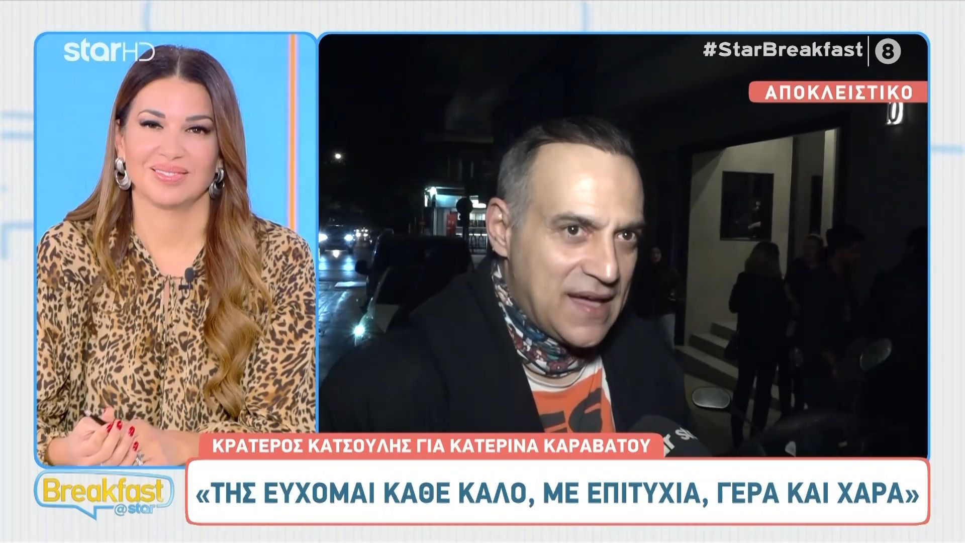 Ο Κρατερός Κατσούλης μίλησε για την ανανέωση της Κατερίνας Καραβάτου στην τηλεόραση, εκφράζοντας τη χαρά του.
